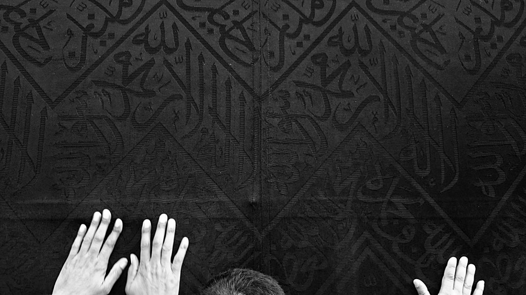 But my father pushes on, intent on fulfilling my mothers wishes. We get so close to the Ka’bah that I am able to touch it, rest my forehead to it. A woman next to me has her entire body pressed against the Ka’bah, her face hidden by the kiswah, sobbing uncontrollably that I almost pity her. But all I can think is…